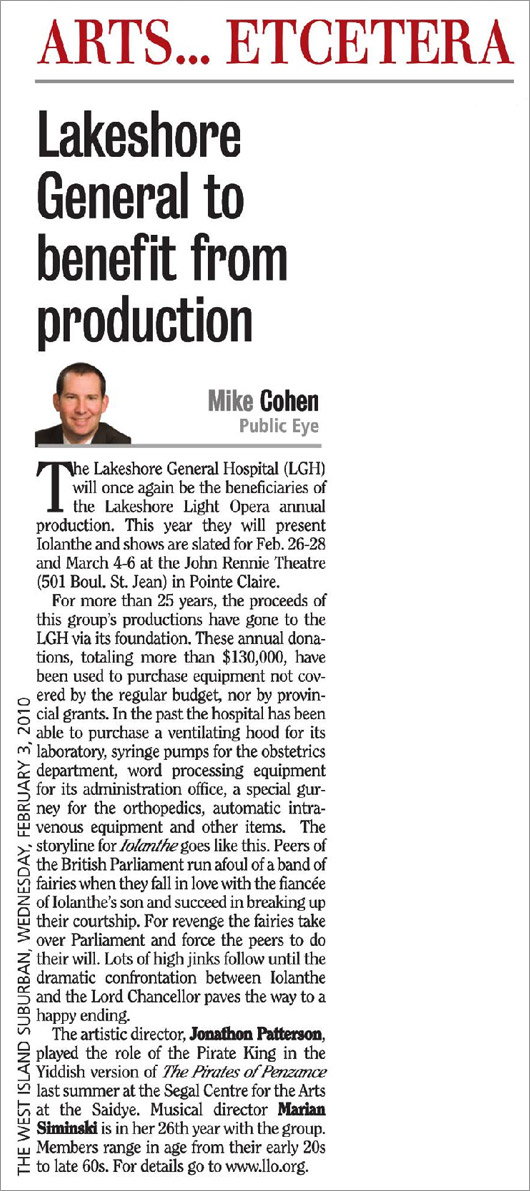 Lakeshore Light Opera helps hospital buy new equipment – The Gazette 2011-02-07