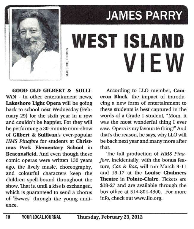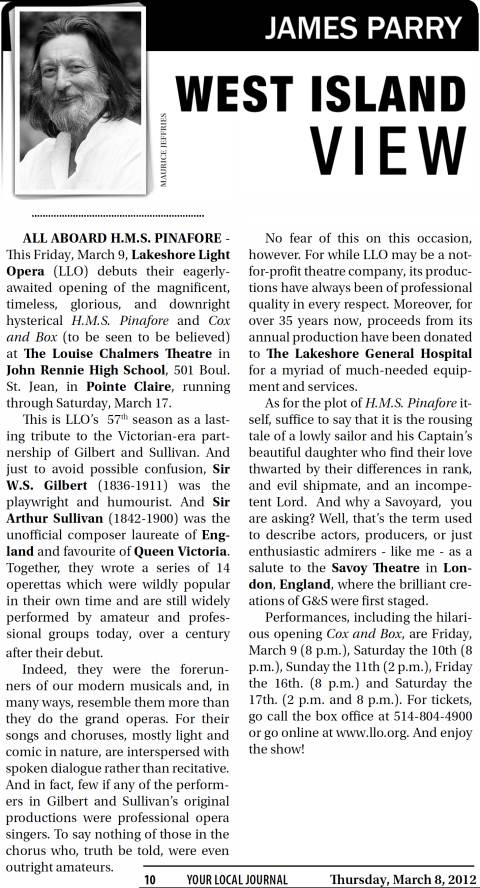 Lakeshore Light Opera sets sail with H.M.S. Pinafore – The Chronicle 2012-03-07